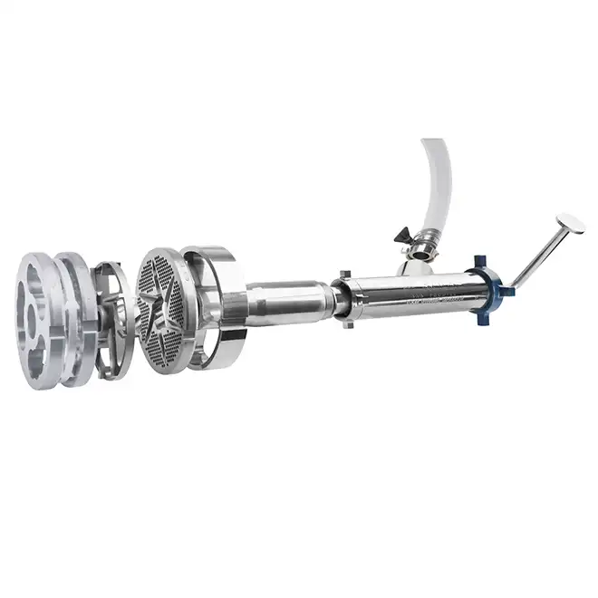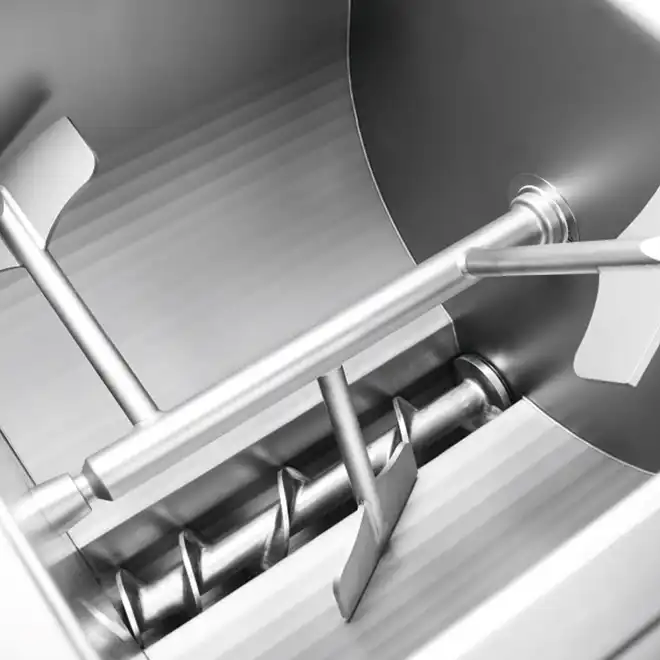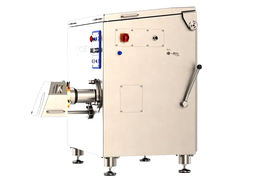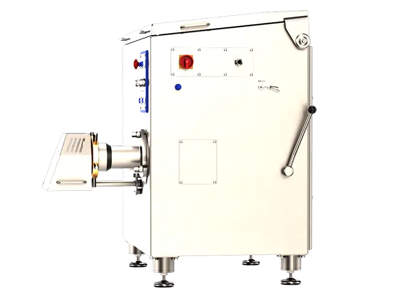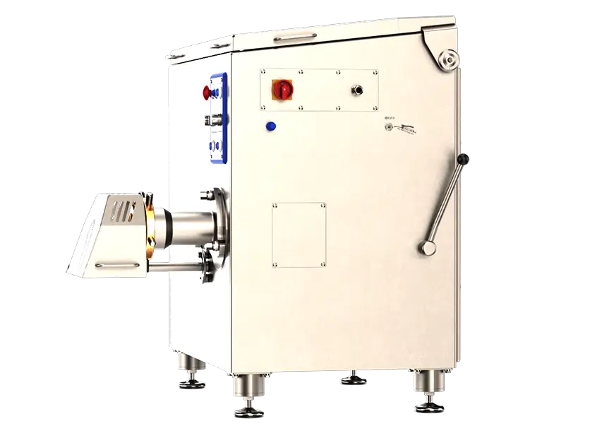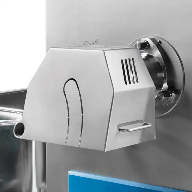 Maschine aus Edelstahl / rostfreie Verschlussmutter / Druckknopfschaltung / Schneckenausstoßer / Steckschlüssel SW 24 / Kombi-Hakenwerkzeug / I-tourige Ausführung / 4 höhenverstellbare Schwingmetallfüße / Vorfüllfunktion der Zubringerschnecke / Anschlusskabel mit CEE-Phasenstecker / Mischeinrichtung (Mischarm) / Autoreversefunktion